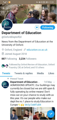 在准备过程中,我主要是做了阅读文献和信息收集两部分工作。首先最重要的就是先把writing sample 中引用的文献都大致再浏览一遍,并记录下每一篇论文的重点,到面试前积累了大概一万字的一个提纲。此外,我还搜集了一些牛津出版的教育类期刊,阅读近期发表的论文和热点话题。信息收集方面,我主要关注牛津的官网,官方Facebook和Twitter,广泛的了解近两个月,甚至近一年来与教育有关的讲座和活动。基本上完整的扒了一下牛津和教育系的近况。