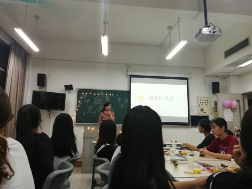 接着是指导老师迟殿凤老师进行致辞。迟老师首先代表因有其它事宜未能出席的杨敏生书记和骆银花书记对社员们表示欢迎并致以亲切问候,对英教自强社干部干事们的工作表示肯定,同时鼓励社员们要“自强不息,厚德载物”,学会感恩,形成严谨高效的做事作风,并且希望同学们自立自尊自强,向公司“自强之星”学习,并努力争取国家励志奖学金。